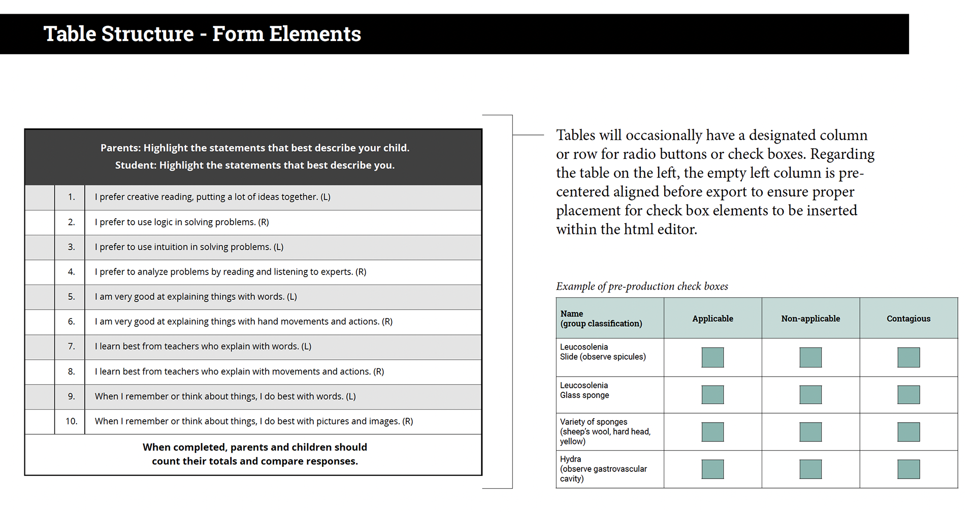 Detailed Table Design